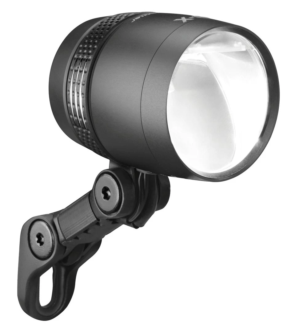 Der Highend-LED-Scheinwerfer Lumotec IQ-X E für eBikes sorgt für eine extrem breite, weite sowie gleichmäßige Ausleuchtung. Der Hersteller Busch &, Müller setzt dafür bei diesem LED-Scheinwerfer eine neu entwickelte IQ-Lichttechnologie ein. Dadurch leistet der Scheinwerfer für eBikes starke 150 Lux. Nicht nur im Dunklen sind Sie sicher unterwegs, denn das sensorgesteuerte Tagfahrlicht garantiert auch die sichere Fahrt im Hellen. Die zusätzlichen LEDs mit seitlicher Lichtabstrahlung sorgen beim LED-eBike-Scheinwerfer IQ-X E für ein Großflächen-Lichtfeld mit Nahfeld-Ausleuchtung.