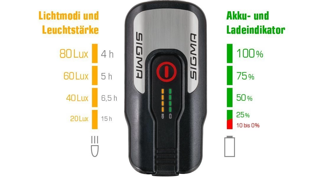 • 2-stufiger Sigma Akku- und Lade-Indikator