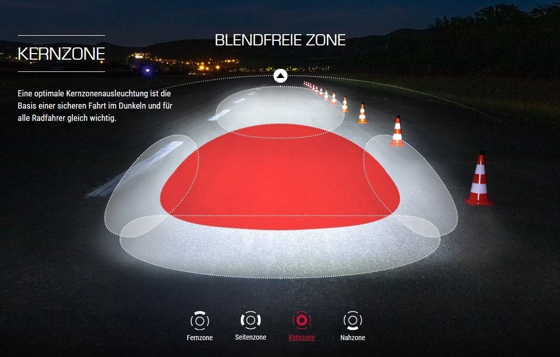 Mit einem homogenen Lichtbild bietet die AURA 80 USB optimale Sicht im Fern-, Seiten-, Kern- und Nahbereich, ohne dabei andere Verkehrsteilnehmer zu blenden. Damit gewährleistet sie höchste Sicherheit im Straßenverkehr.